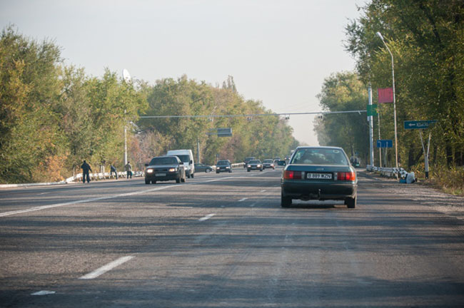 В восьмидесяти двух километрах от Алматы дорога становится значительно хуже, она вся залатанная, берегите свою машину! От Кульджи до Чилика шоссе трехполосное, а расстояние между поселками большое, так что, если не жаль подвеску - развивайте скорость.