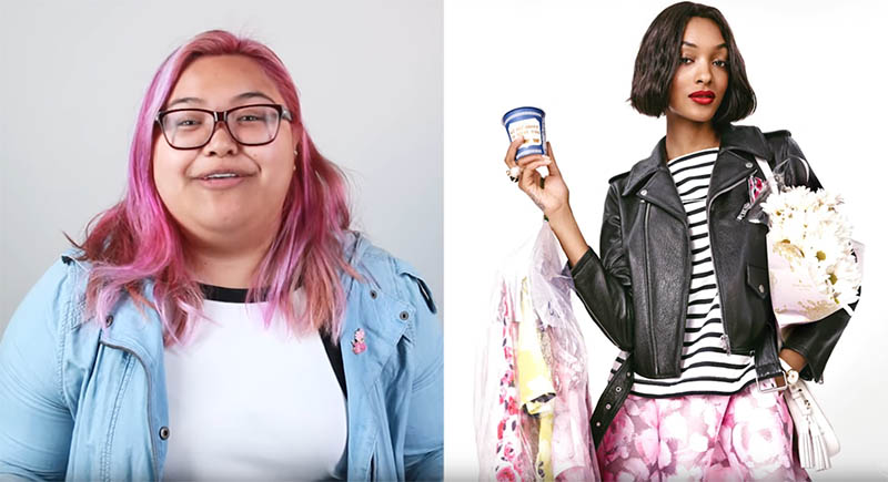 Даника, темнокожая девушка в очках и с розовыми волосами, вызвалась повторить плакат Kate Spade. На нем изображена афроамериканка, с сумками, одеждой и кофе в руках, в весьма симпатичном наряде, сочетающем романтичные и байкерские элементы (шифон, тельняшка и косуха). Даника сочла, что девушка на снимке выглядит по-хулигански, она высокая и красивая, и ей будет очень трудно «дотянуть».