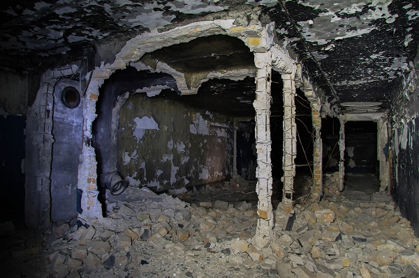 Спустились наконец вниз, страхуя друг друга, цепляясь за торчащие арматурины, и соскальзывая вниз по сухой осыпающейся глине. Состояние этих шахт в значительно худшую сторону отличалось от аналогичных на 13-м километре. Видимо, сказывается удаленность от трассы и сторонних наблюдателей, а может здесь вояки, навсегда покидая комплекс, решили напоследок основательно его рвануть, но сразу за спуском чернел огромный провал на нижние уровни, гигантская глыба армированного бетона была просто выломана со своего изначального места и сброшена вниз. Почти все перегородки между жилыми и служебными отсеками варварски разломаны, вот только зачем? Кирпич не тронут, такое ощущение, что целью было разрушение ради самого процесса разрушения.