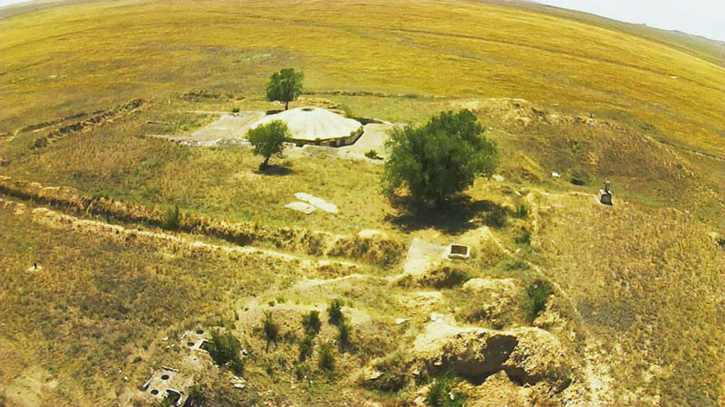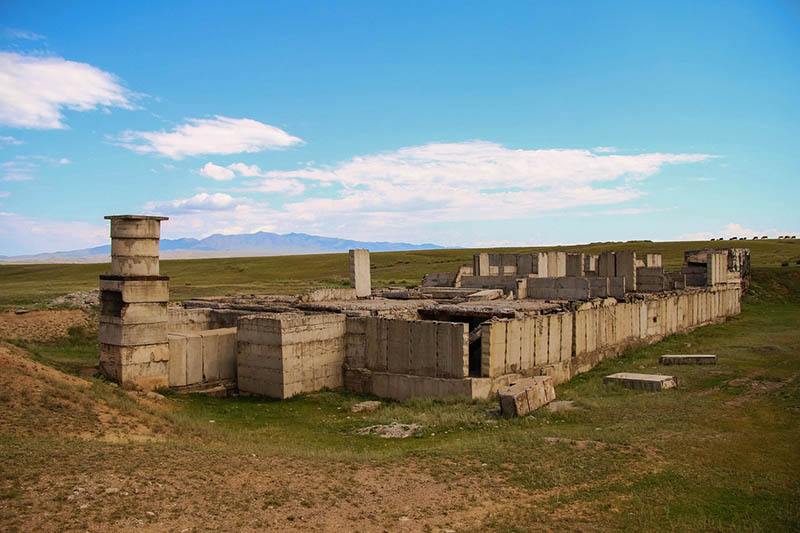 Forty kilometers later, finally, there was a turn to the desired settlement, beyond which was a broken asphalt road leading to our unfinished construction. The village, though in the wilds, was quite nice and well-groomed, a decent Lexus stood at the gate of one of the houses, and in another courtyard the locals painted a tractor and a trailer with a spray gun. The straight road was washed away by a steppe rivulet in the 90's, and we had to storm a shallow fork in the middle of the village. The car got covered with a layer of dirt, while we sweat, because the prospect of getting stuck in a stream inspired no one. Immediately after the village, the asphalt became a little straighter, but it was still clear that no real road was ever constructed here, so our destination was definitely something never finished. Herds grazed the hills, and the shepherds showed an absolutely obscene degree of curiosity with the car with Almaty numbers. The standard situation for any outing, helping my paranoia and social phobia to bloom in full. Shepherds were motorized, by the way, under the bush in the shade a quad bike and a pair of cans of petrol attached to it. it's understandable - driving a herd along the steppe is handier on a quadro cycle than on foot. The last turn of the road, and we saw the purpose of our journey: