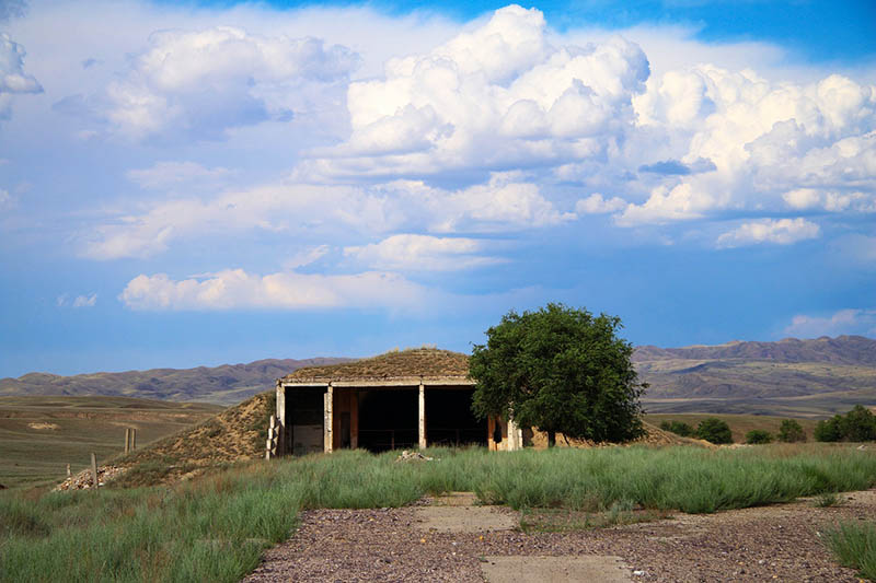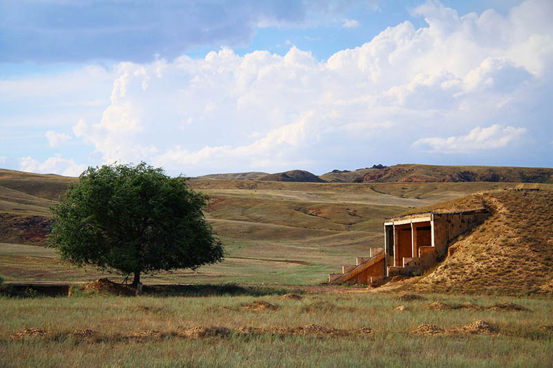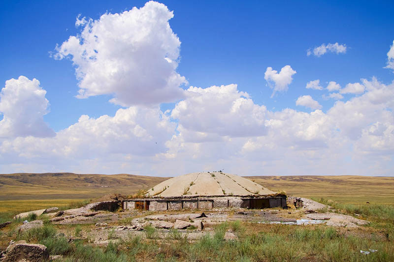 My friends quickly got tired from walking around rooms and corridors filled only with bird poop, but I’m a photographer and I was busy with documenting everything and anything. As a result, everyone but me returned to the car, while I shared the abandoned radio-center with the birds. I could have kept taking pictures for hours still, but the guys let me know that a shepherd was headed my way. My paranoia took control and I ran off with my equipment to join my friends. The shepherd turned out to be absolutely disinterested, but we still had a lot of time and didn’t get enough from just one object. We decided to go to Sary-Ozek itself to the R-14 rocket shafts. As we were pulling away from the radiocenter, we passed by a immaciated local guy who waved us goodbye: