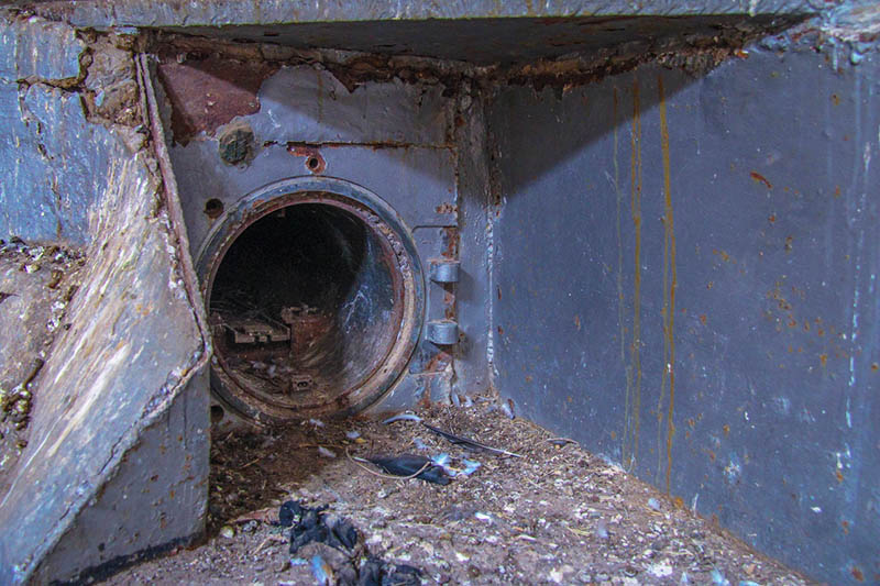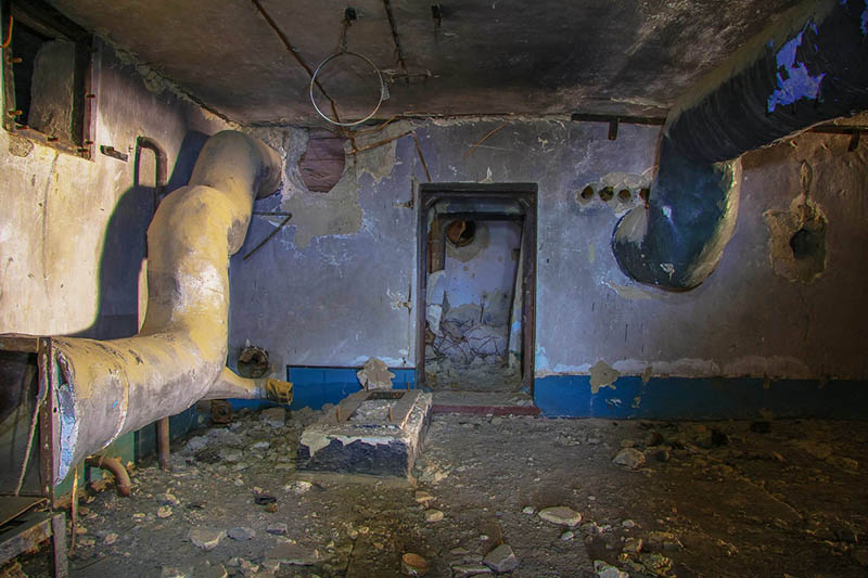 The last photo is noteworthy for the fact that it clearly shows how, as a result of a powerful explosion, a thick concrete slab, which was the ground floor of the first floor, fell to the second floor, as well as the completely destroyed side walls. I suspect that the looters couldn’t have caused such damage. Maybe the complex was damaged by engineering charges. Actual real Americans lived in the nearby town at the time of the Soviet disarmament and they are very pedantic with removing the weaponized teeth of their former enemies.