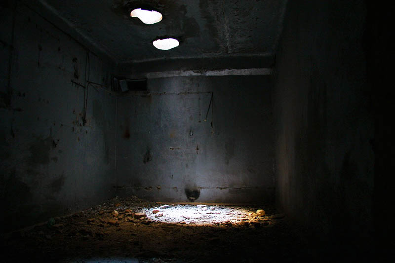 The upper floor was used to house command, residential and storage facilities, as well as ventilation and toilets with showers. It suffered much more than the lower floors, since all the walls here were made of ordinary brick, and they were blown to bits. The lower level is monolithic reinforced concrete. Having wandered in vain through the ventilation compartments, having photographed the surviving pipes (on some, even the tug-gage meters were preserved), I descended down the fallen slabs. A convenient metal ladder, characteristic for the first positions, is not preserved here. All this time my companions moved somewhere beyond the walls, without interfering with my shooting and walking for my own pleasure. Having met them at last, I went to one of the rocket shafts: