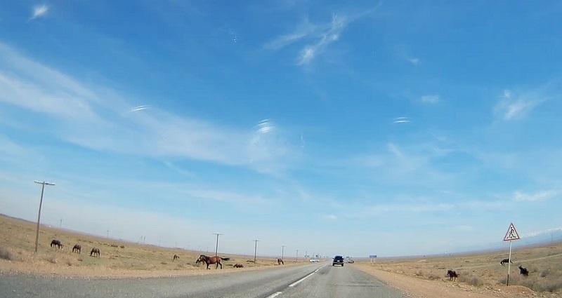 Важно: в начале пути стоит заправить полный бак. На бетонке вас ждет длинный участок дороги, где пока не построены АЗС. При въезде на платную трассу стоят ворота с видеокамерами, сканирующими номера машин. Поэтому нужно установить приложение для оплаты или запастись наличкой (600 тенге). Также на трассе пока отсутствуют современные туалеты.