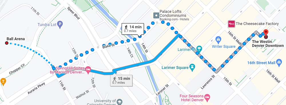 Located only 0.9 miles (1.5 km) away from Ball Arena, you can get there by foot in about 15 minutes.