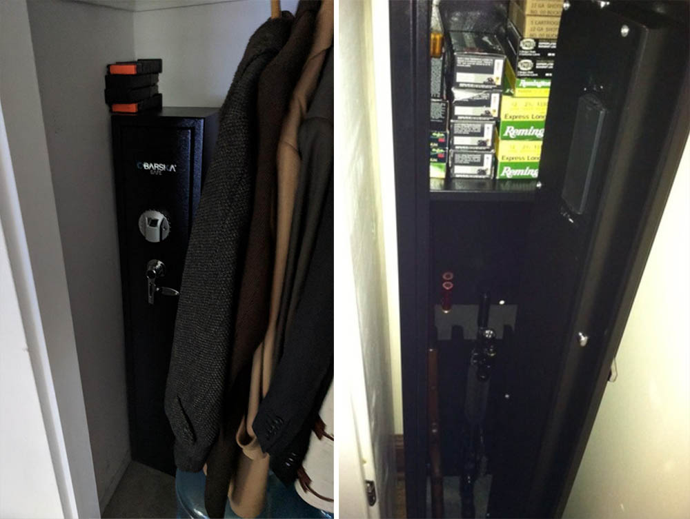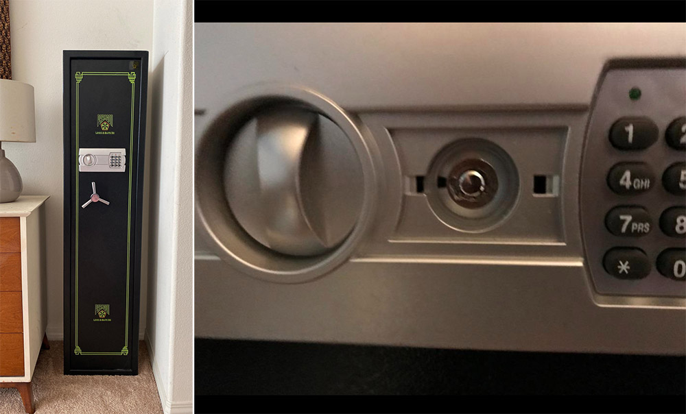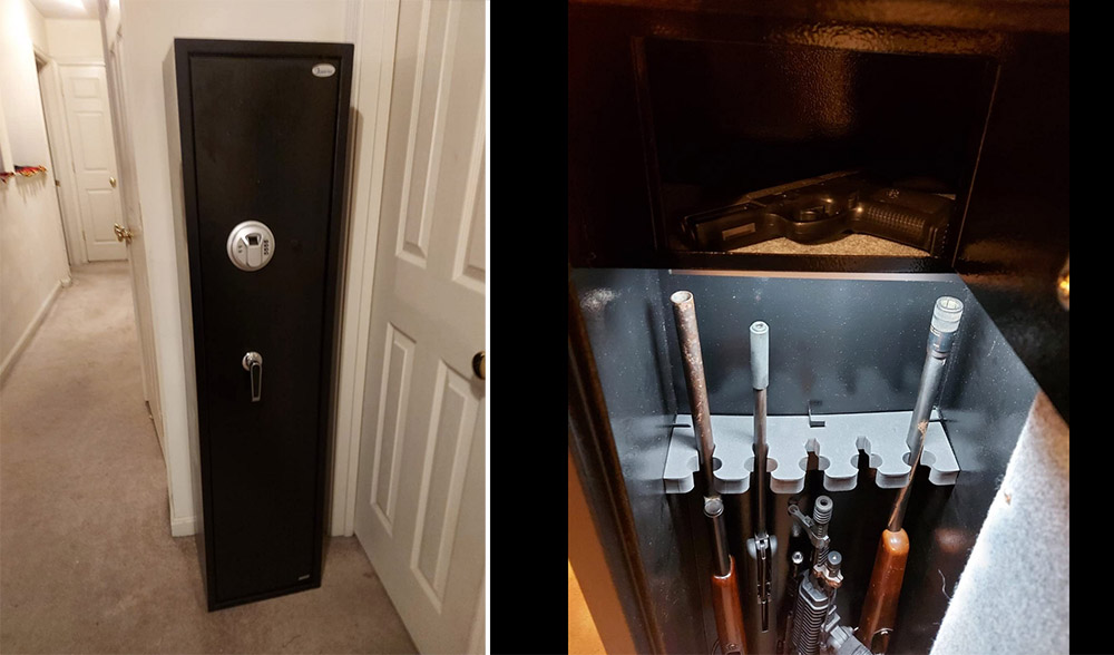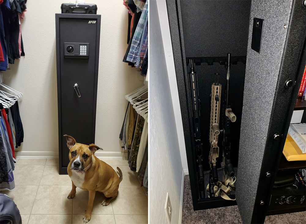 However, larger scoped rifles might need adjustments. It's not a heavy-duty safe or fireproof, but it fits my needs, keeping my firearms secure and away from my kids.