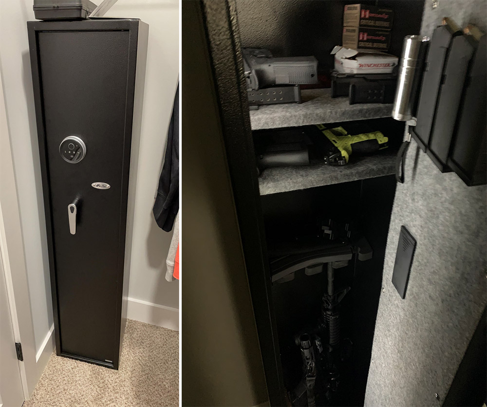 Inside, it accommodated my rifles, pistols, and ammo with adjustable shelves. The pistol holder on the door was a nice touch.