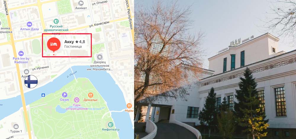 Расположение: отель находится на правом берегу Ишима, напротив Центрального Парка, в непосредственной близости от Министерства финансов, центра судебной экспертизы, и посольства Португалии.