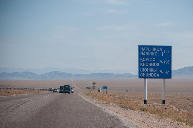 Не сворачивая с главной трассы, поезжайте к перевалу Кокпек и одноименному поселку. Здесь можно остановится, перекусить, купить в дорогу что-то необходимое – дальше магазинов будет мало. После поселка на трассе появится указатели: прямо в Нарынкол, налево в Чунджу. Сворачиваем налево. Дорога плоховата, будьте внимательны. От Чилика до Чунджи почти нет населенных пунктов, по одной полосе в каждом направлении.