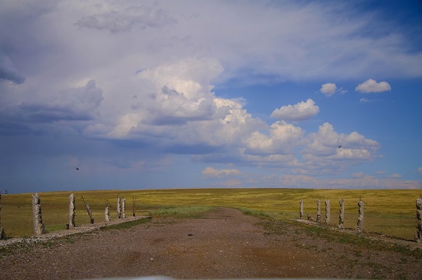 Степи вокруг выжжены беспощадным летним солнцем, среди красок преобладают желтый и коричневый цвета, выветрившиеся скалы, и жаркий как в духовке ветер. Спуск с перевала был недолгим, и вот уже развязка с заветными буквами, которые я так жаждал увидеть в 2010 году, когда впервые ехал в эти края: