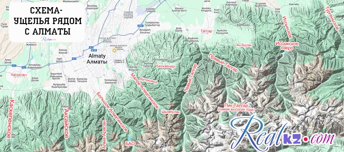 Планируя отдых в горах Алматы, обязательно включите в программу посещений местные ущелья. Многие из них находятся недалеко от города – фактически в его черте. Распознавать их можно по названиям.