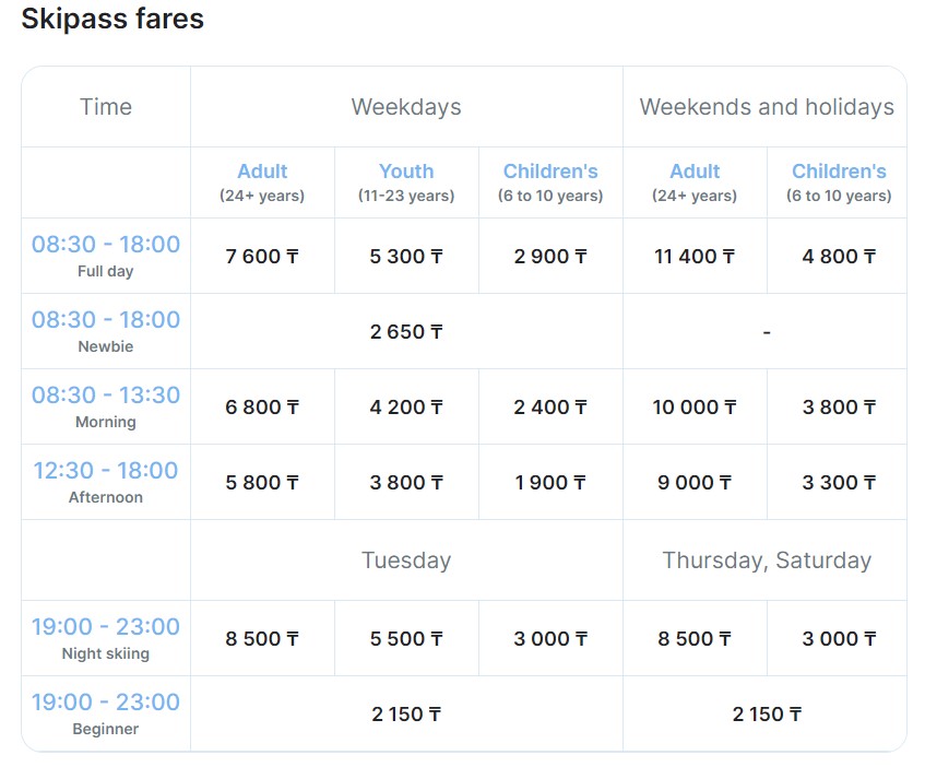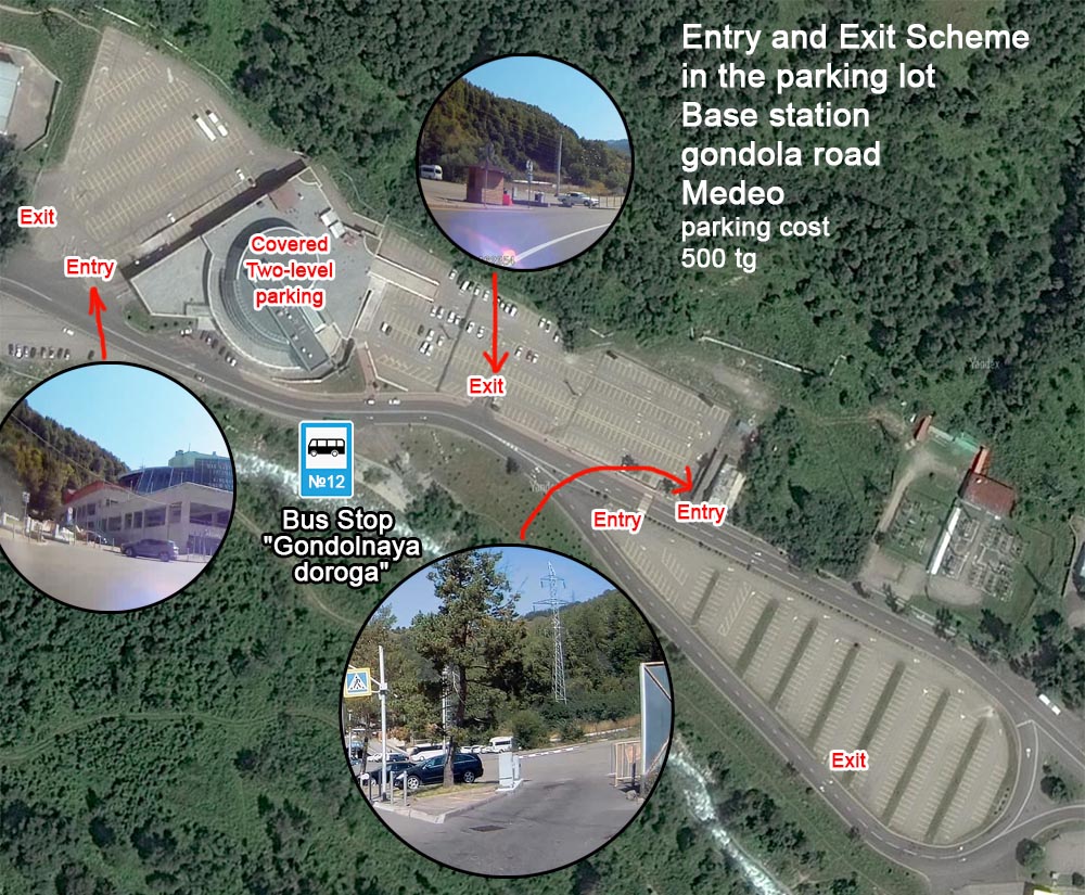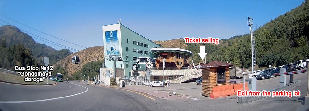 The price for a parking space is 500 KZT per day. The parking lot is available seven days a week. You need to pay for parking lot directly at the ticket window, where you buy tickets for the cableway.