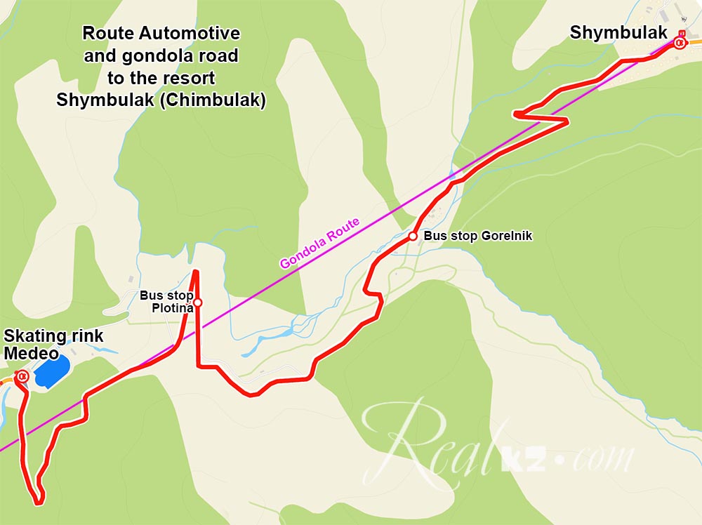 The cable car to Shymbulak starts from Medeo. The station is located 500 meters down the road from the skating rink. It can be reached in two ways.