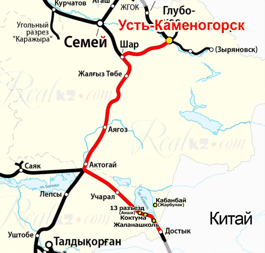 Города Семей и Усть-Каменогорск расположены недалеко друг от друга, железные дороги из эти городов соединяются в одну на станции Шар.