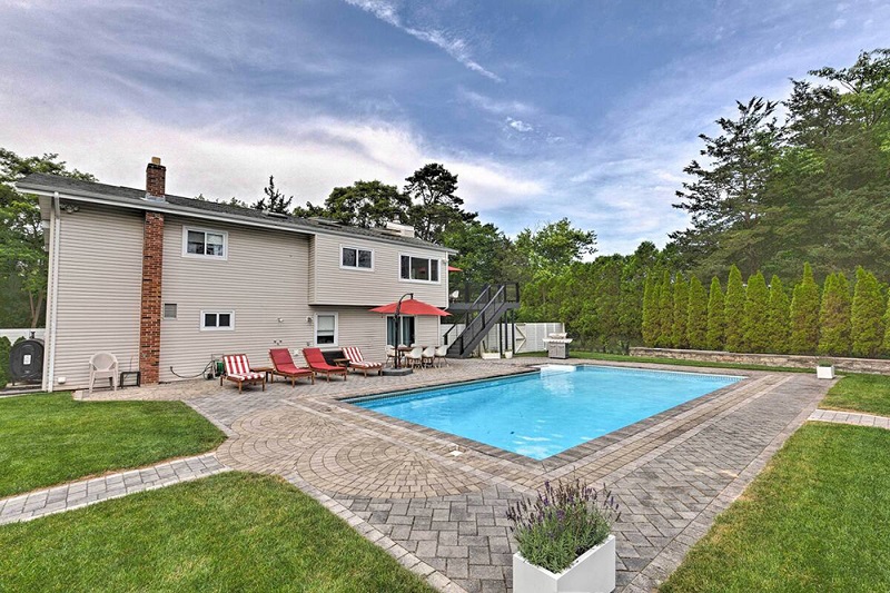 Relax and experience fun right at your fingertips when you book this 6-bedroom, 2-bath Hampton Bays vacation rental. Upon arriving, you will be in awe of this charming house, featuring modern updates and a feeling of luxury. Spend your days lounging by the pool, dining under the large umbrella on the deck, or preparing a meal in the sleek, contemporary kitchen. If you’re looking for adventure, head to Ponquogue Beach or Fire Island National Seashore to make the most of your Hamptons holiday.