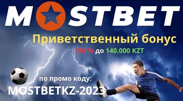 Самый крупный бонус в Mostbet за первый депозит. Это так называемый приветственный бонус, который дает новому клиенту конторы 100% от суммы первого депозита. Максимальная сумма доступного бонуса в рамках этой акции для игроков с казахской регистрацией составляет 140000 тенге.