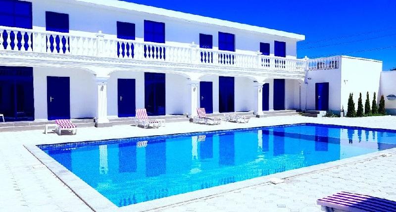 Del Mare is a stunning hotel that resembles the Greek island of Santorini. Located near Kapchagai’s water park and the Astoria casino, it's an ideal spot for family vacations. The hotel offers 16 rooms equipped with climate control systems, satellite TV, and terraces with garden furniture. The private bathrooms provide slippers, towels, shampoos, shower gels, and hair dryers.